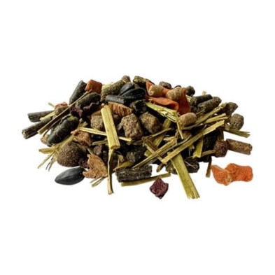 Alfalfa / Salvado de arroz ( tratado hidrotérmicamente a presión) / Pulpa de manzana / Alfalfa tallos / Copos de pulpa de remolacha ( azúcar <8%) / Aceite de haba de soja / Lithothamne (AveMix Calitho) / Lignocelulosa / Semillas de girasol / Torta de presión de semillas de lino / Melaza de caña / Fosfato monocálcico / Pulpa de remolacha (<8% Ázucar) / Manzana seca / Remolacha roja seca / Copos de zanahorias / Semillas de lino / Cáscaras de semillas de girasol / Mix de hierbas / Extracto de macleaya / Aceite de semilla de girasol / Carbonato de calcico / Levaduras (Yea Sacc) / Cloruro de sodio