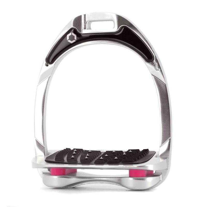 Los estribos Flex-On Aluminio están fabricados de un tipo de aluminio especial que se emplea en la aeronáutica. Ofrecen una sofisticada flexibilidad que absorbe los golpes y el taco puede ser de Grip o Ultra- Grip para una mejor adherencia,, además de una estabilidad óptima y una perfecta conexión con la monta. El arco del estribo tiene una orientación especial que junto a la ranura sesgada para la ación ofrece una mayor facilidad para introducir el pie en el estribo a la vez que es ultraligero. Además permite a los jinetes personalizarlo. El estribo Flex-On Aluminio está completamente fabricado de un único bloque de aluminio sólido. El departamento de I+D ha diseñado un estribo con una geometría compleja que le confiere fuerza y ligereza a la vez.