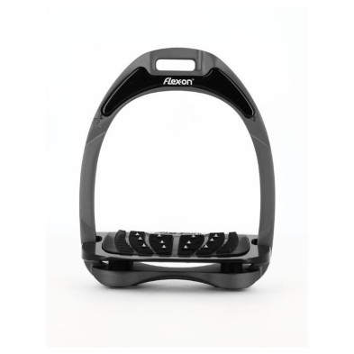 un estribo que se recupera fácilmente en caso de que el jinete lo pierda. La generosa plantilla proporciona una amplia zona de apoyo y el ángulo inclinado favorece que el talón se mantenga abajo.