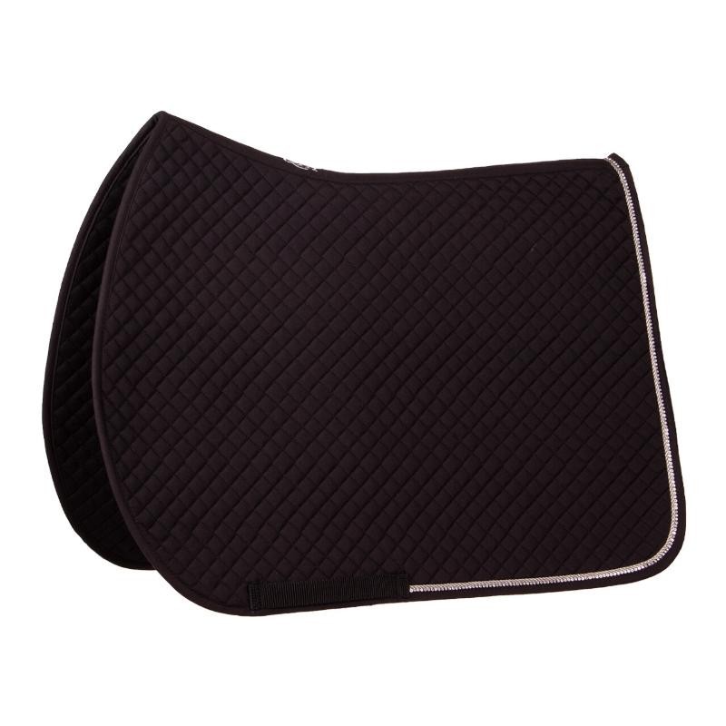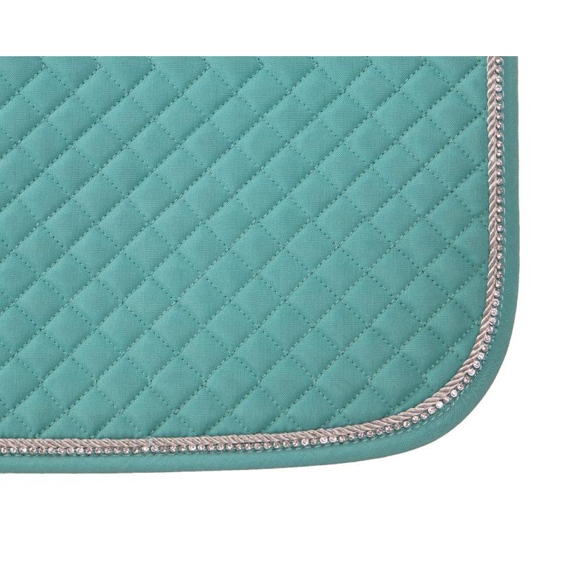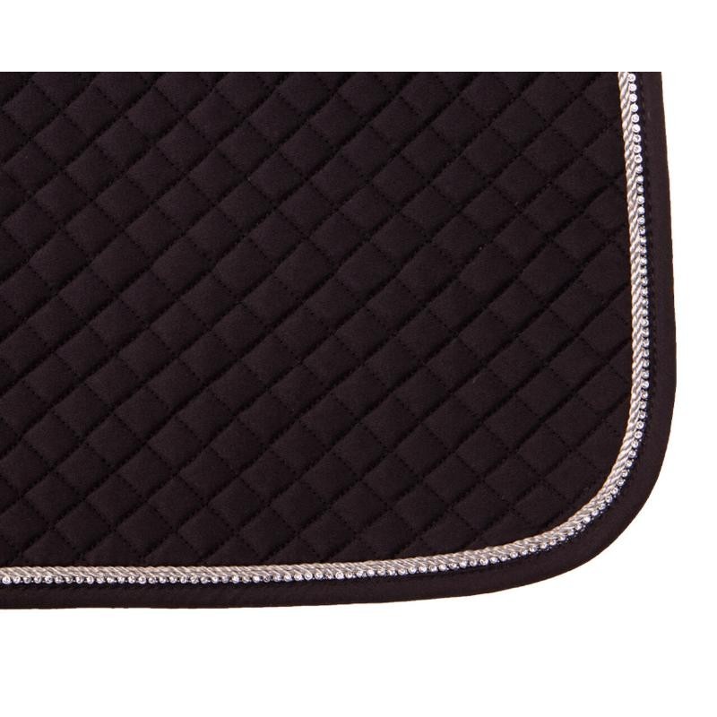 La mantilla Cali es para jinetes a los que les gusta un poco de brillo. Los diamantes de imitación a lo largo del cordón decorativo le dan un aspecto elegante. Está equipada con trabillas para la cincha que garantizan que se mantenga en su lugar, presenta forma anatómica y además este producto es adecuado para poder bordarlo.