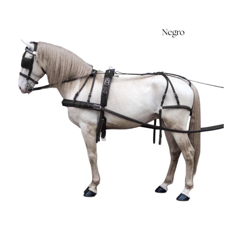 Los enganches RONDE están fabricados en cuero de alta calidad y reforzados en nylon en el interior, hebillaje de acero INOX y portavaras con cierres rápidos.