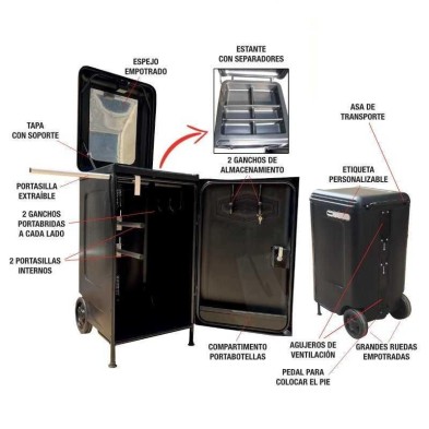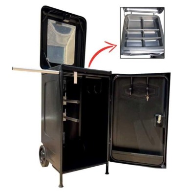 Baúl para transporte de equipación hípica vertical, con chasis de soporte, funcional y súper resistente.