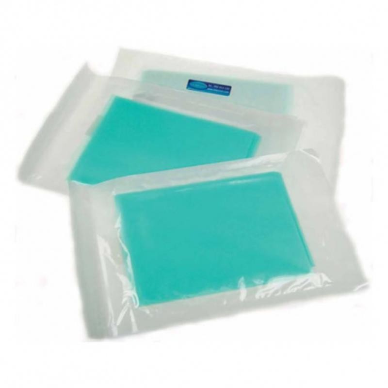 Paños quirúrgicos de plástico verde flexible.