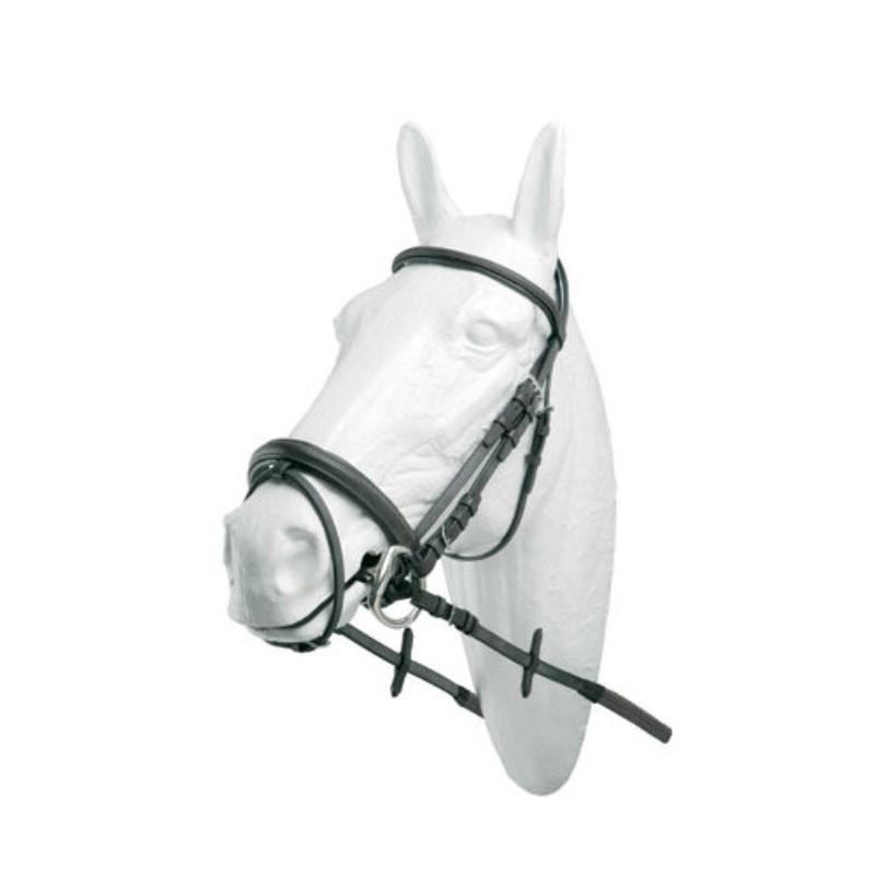 Con muserola doble ancha y acolchada con cierrabocas. Su precio incluye riendas de cuero lisas. Medidas: COB, FULL y PONY.