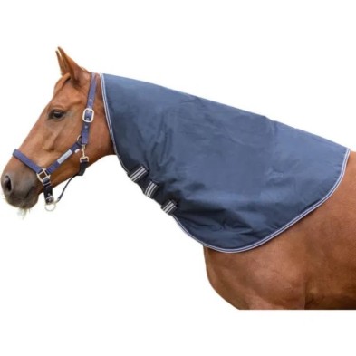 Cubrecuello independiente con relleno de 100 g. Compatible con mantas de exterior con anillas en D en la parte delantera. El cuello es impermeable y se fija fácilmente con tres velcros.