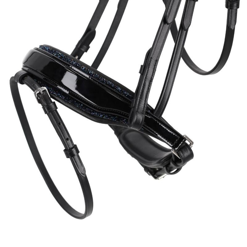 El acolchado extraíble de la muserola está barnizado y con purpurina.