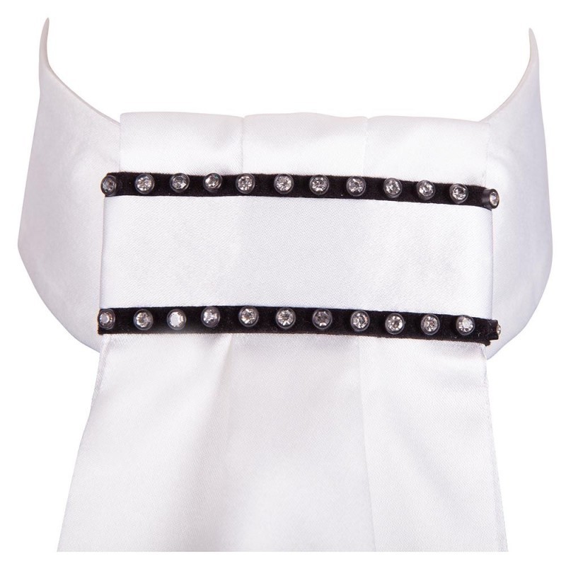 El centro del plastrón se ha decorado con dos líneas de pequeños brillantes. La parte inferior se ha decorado con un bordado BR de color plata. El plastrón está listo para colocar y no necesita alfiler. Se puede abrochar fácilmente alrededor del cuello, mediante el cierre de velcro en la parte trasera.