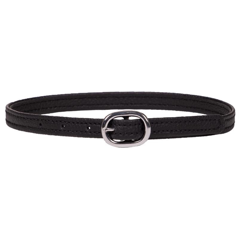 Correas para espuelas Veganso de cuero sintético. Cuentan con una hebilla ovalada. Su material flexible permite sujetarlas fácilmente a las espuelas.