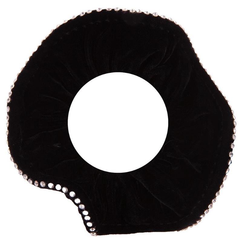 Elegante coletero de terciopelo para moño, con ribete decorativo adornado con pequeños diamantes de imitación.