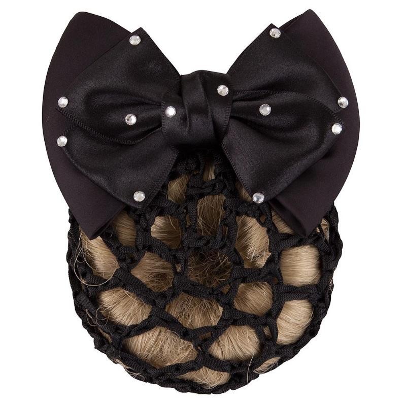 El lazo incorpora diamantes de imitación, aportando un acabado elegante y refinado. Diseñada para mantener el moño firme y ordenado durante la monta.