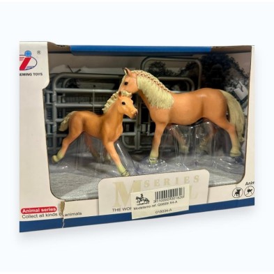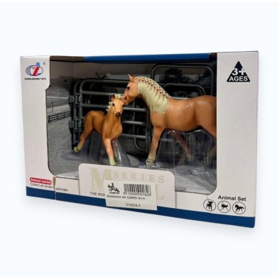 Este set de juguete presenta una encantadora escena de una yegua y su potro, empacados en una caja de presentación con ventana transparente. Perfecto para jóvenes amantes de los animales y coleccionistas, este set combina figuras realistas con elementos de diorama para un juego imaginativo.