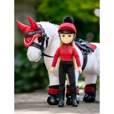 Con su brillante melena rubia y su llamativo conjunto en rojo chile, siempre está lista para salir a la pista de competición. Chloe, una de las tres muñecas ecuestres interactivas, totalmente articuladas y de alta calidad, con personalidades individuales y conjuntos a juego en los colores principales de LeMieux, tiene una melena rubia larga, sedosa, de tacto realista y que se puede peinar, además de pestañas naturales.